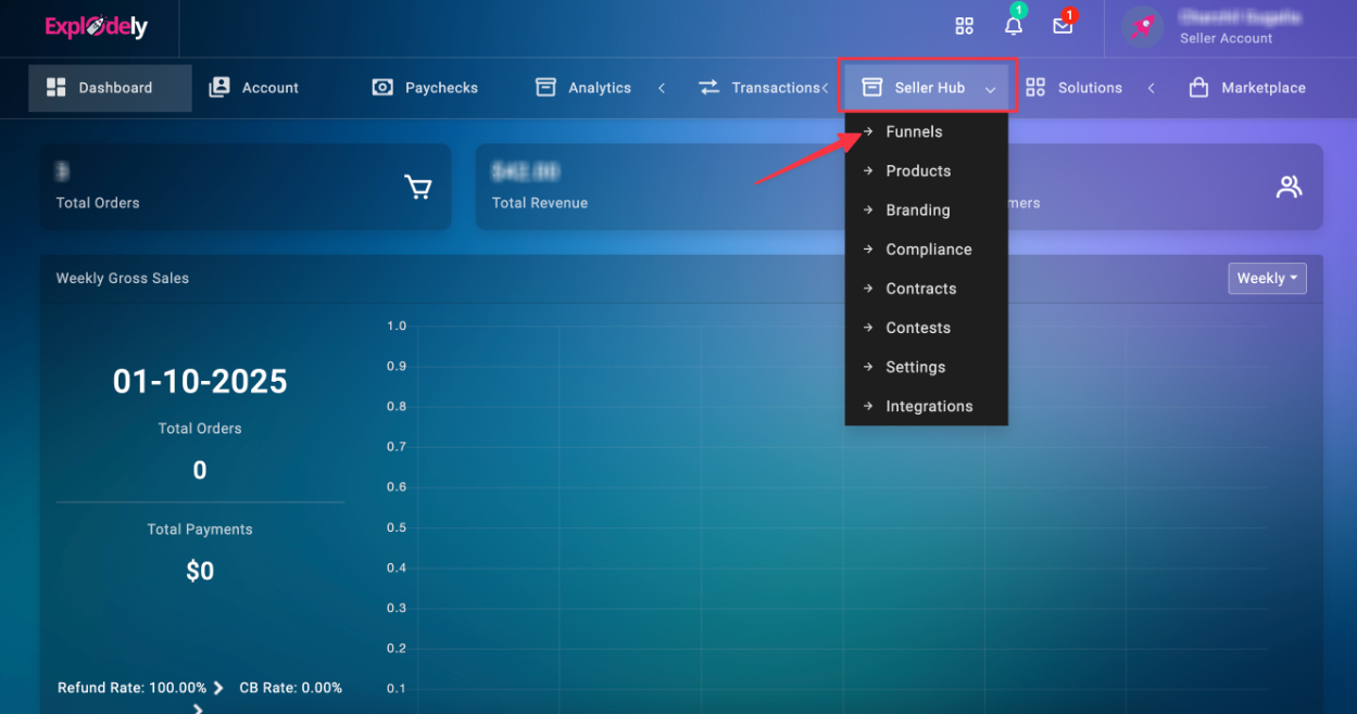 1. Log in to your Seller account here: https://explodely.com/seller/signin