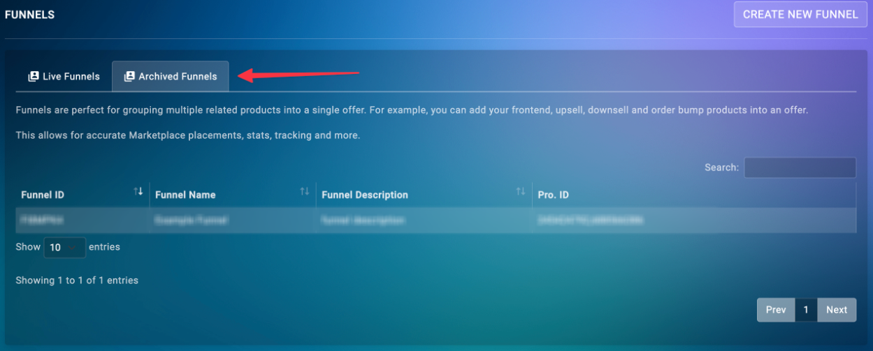 Archived funnels will appear in the Archived Funnels folder as shown below.