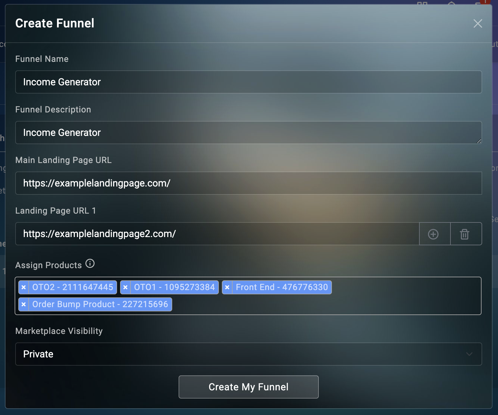 Important: A product can only belong to one funnel. It cannot be copied to another funnel. If you remove a product from a funnel, it can only be added back to that same funnel.