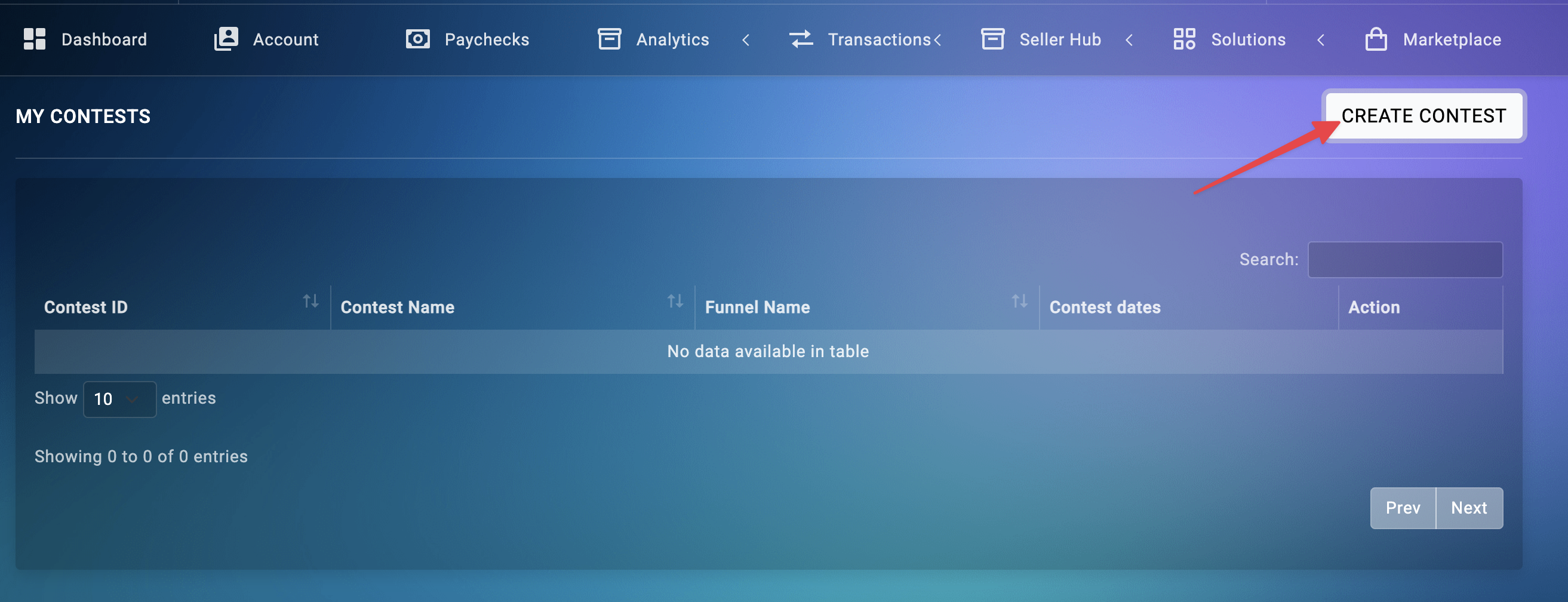 Once you click on Create Contest, you’ll be redirected to the Contests page. On the Contests page, click on Create Contest.