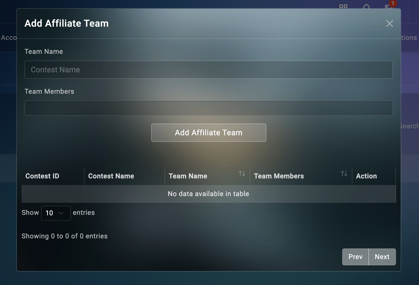 With the affiliate teams feature, you can form teams of affiliates within a contest. Working together increases their chances of winning, as team performance is calculated collectively. When a team wins, the reward is distributed among all its members.