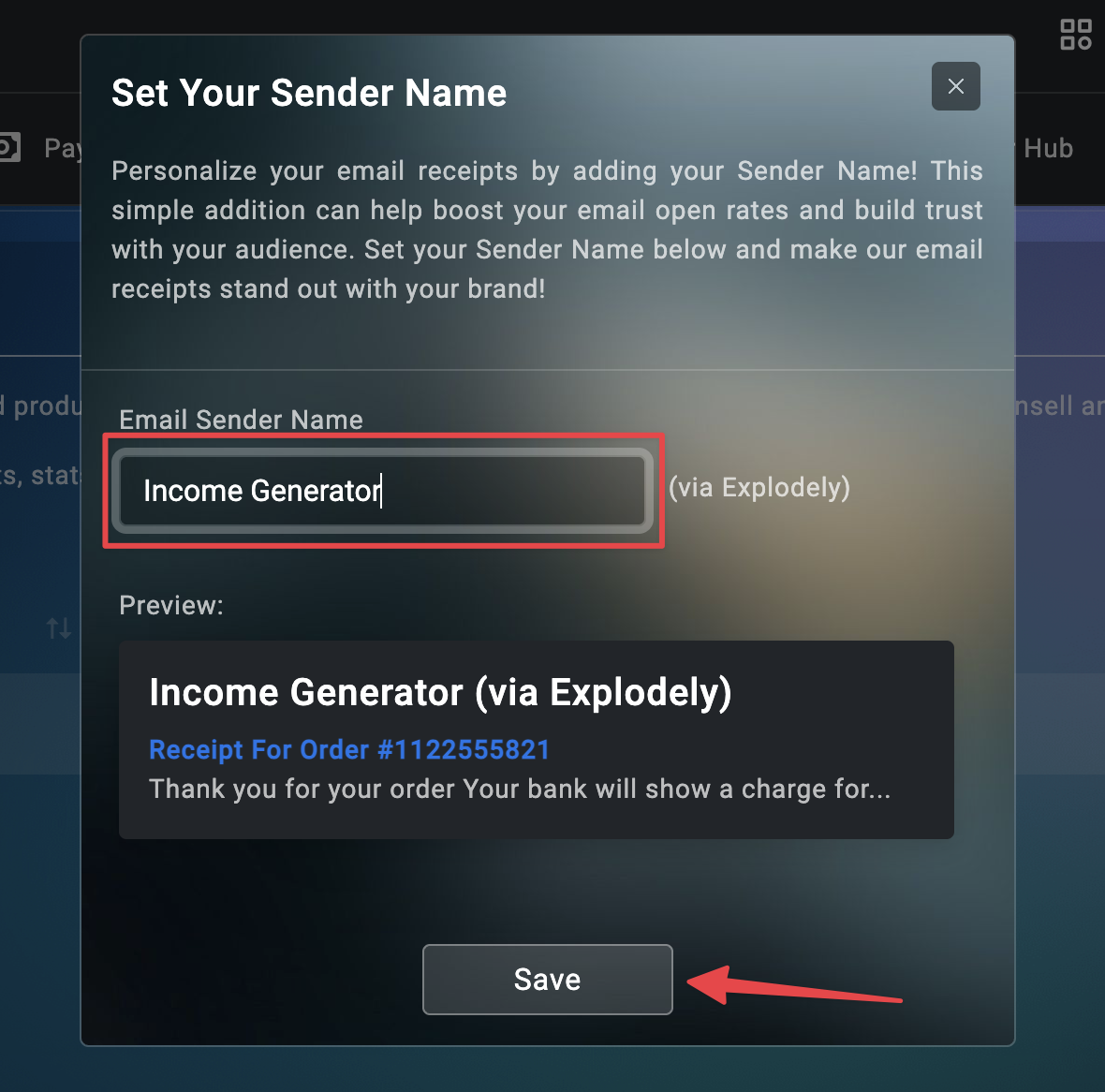 You can customise the Email Sender Name so that receipt emails sent via Explodely display your funnel or product name. This helps strengthen your branding and ensures that buyers immediately recognise and trust the emails they receive.