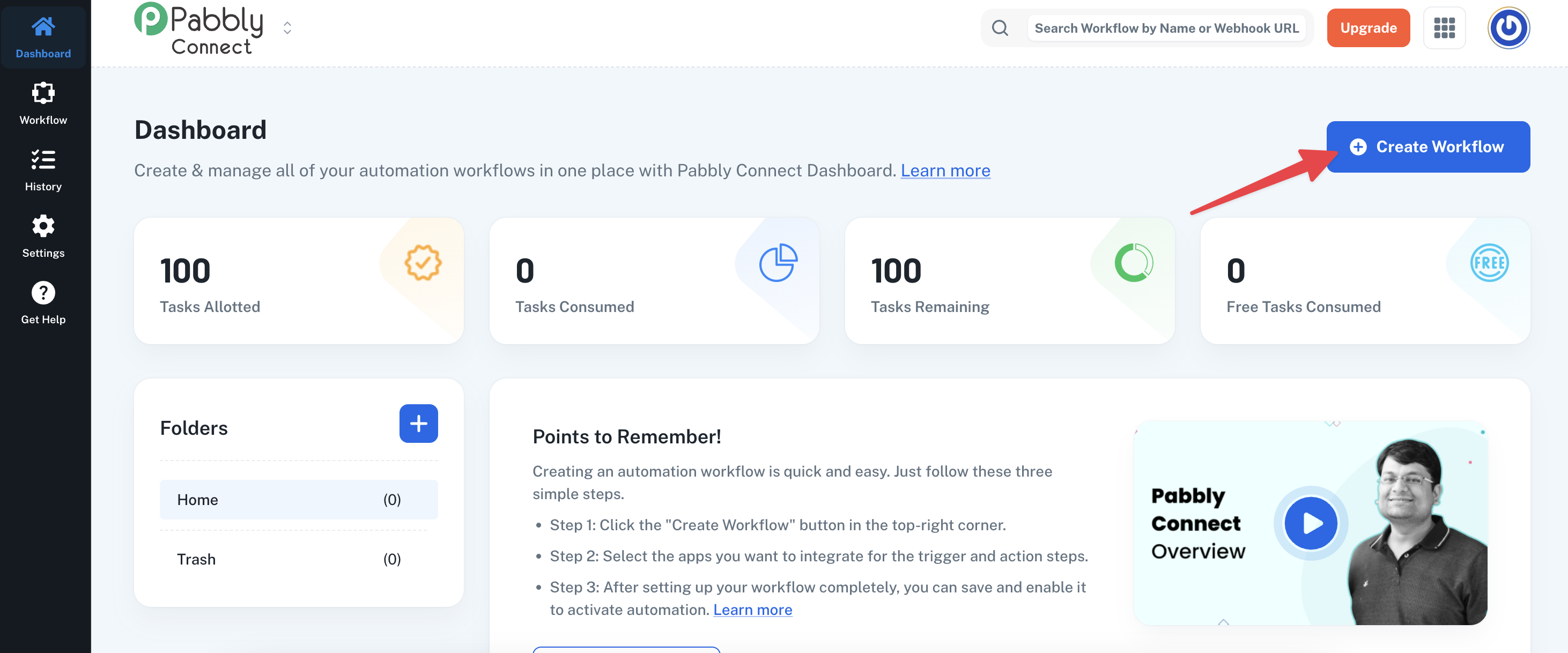 2. Click on Create Workflow.