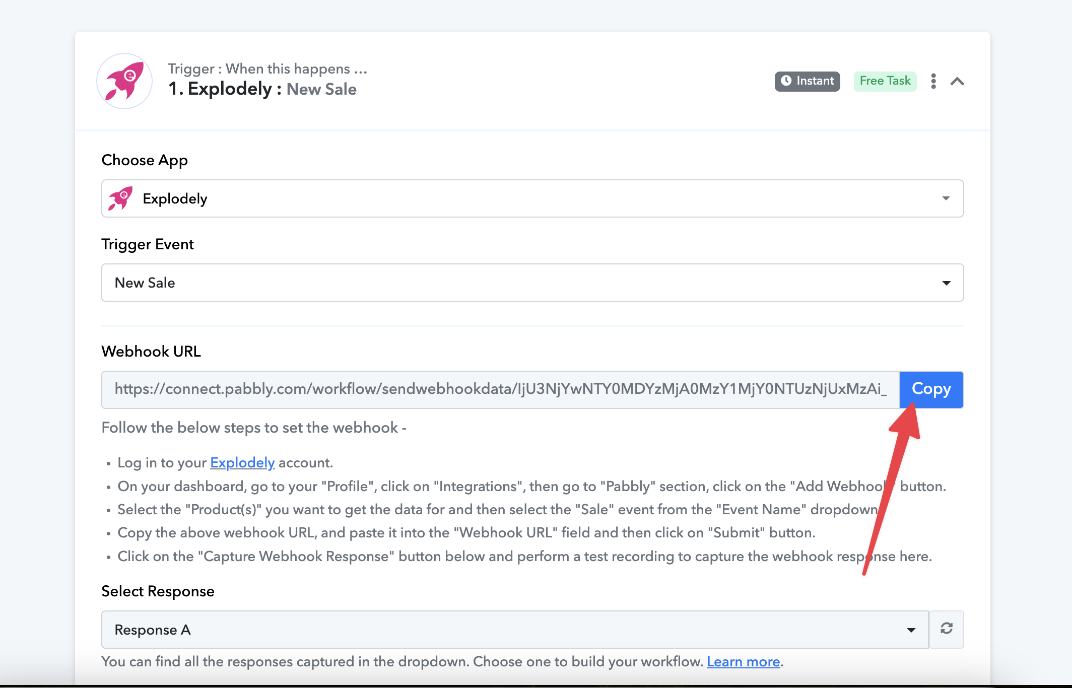 Make a test sale in Explodely so that Pabbly can verify the webhook response. It might take up to 1–2 minutes to verify.