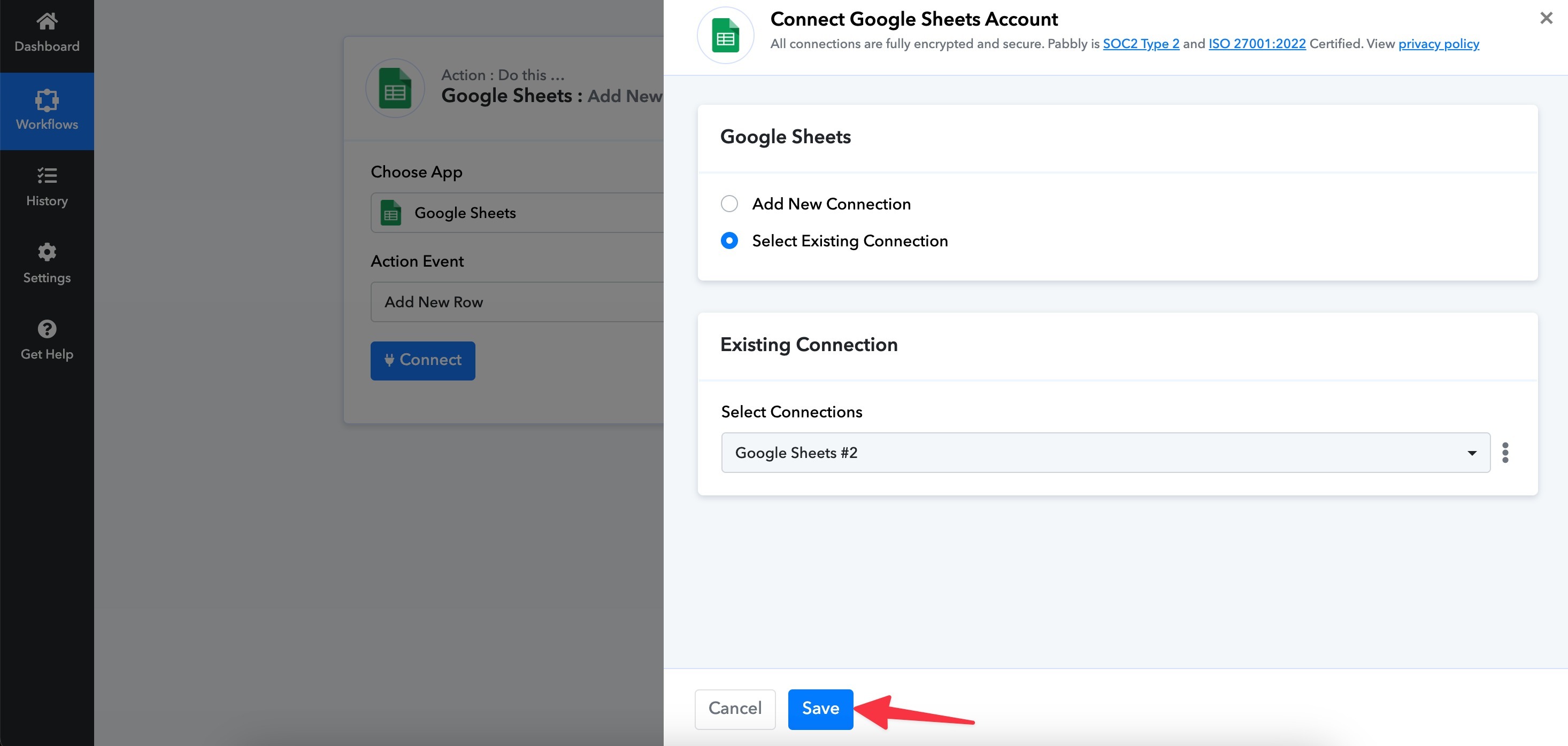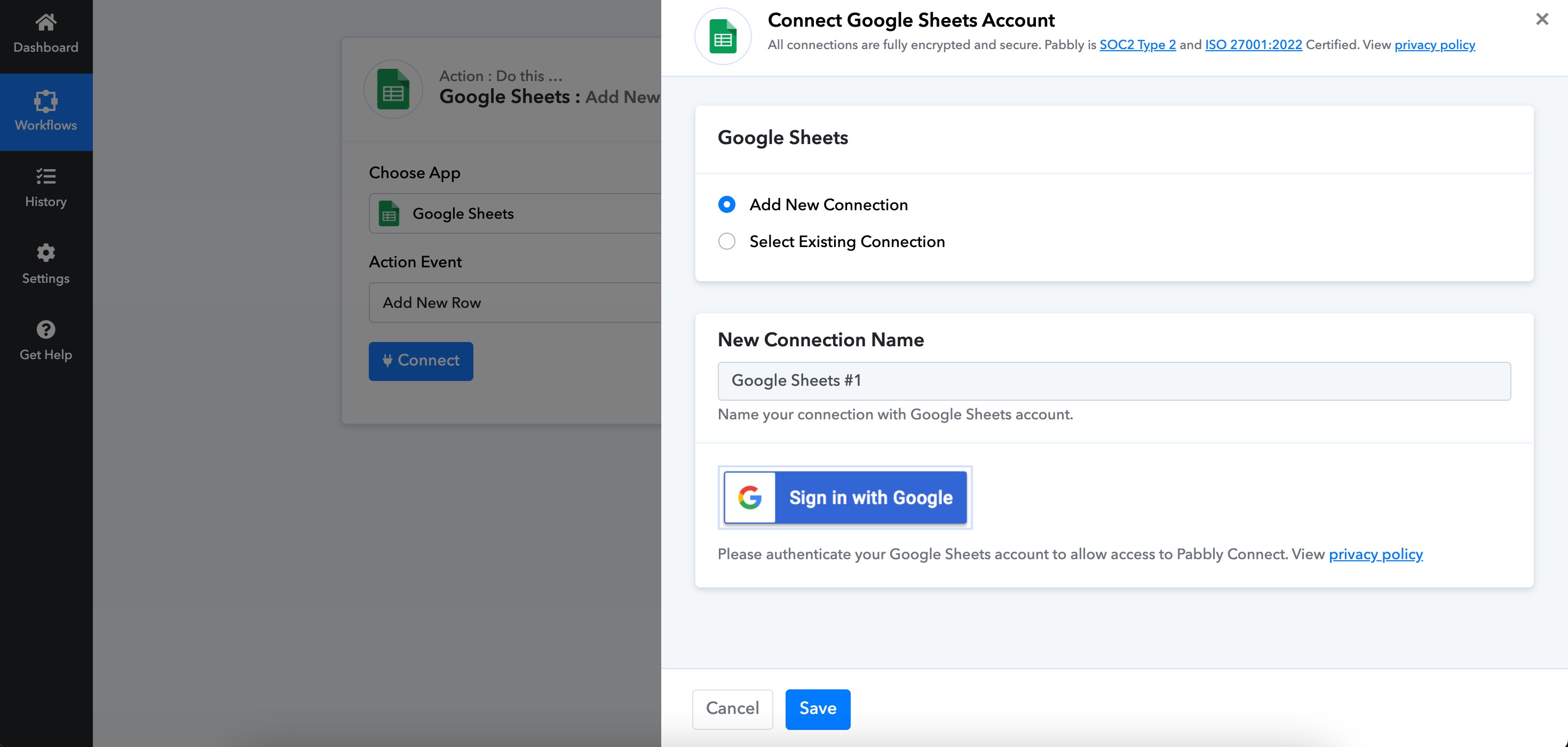 If not, click Add New Connection and sign in with your Google account to give access.
