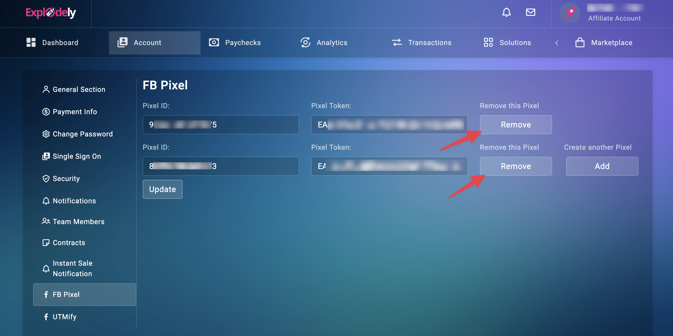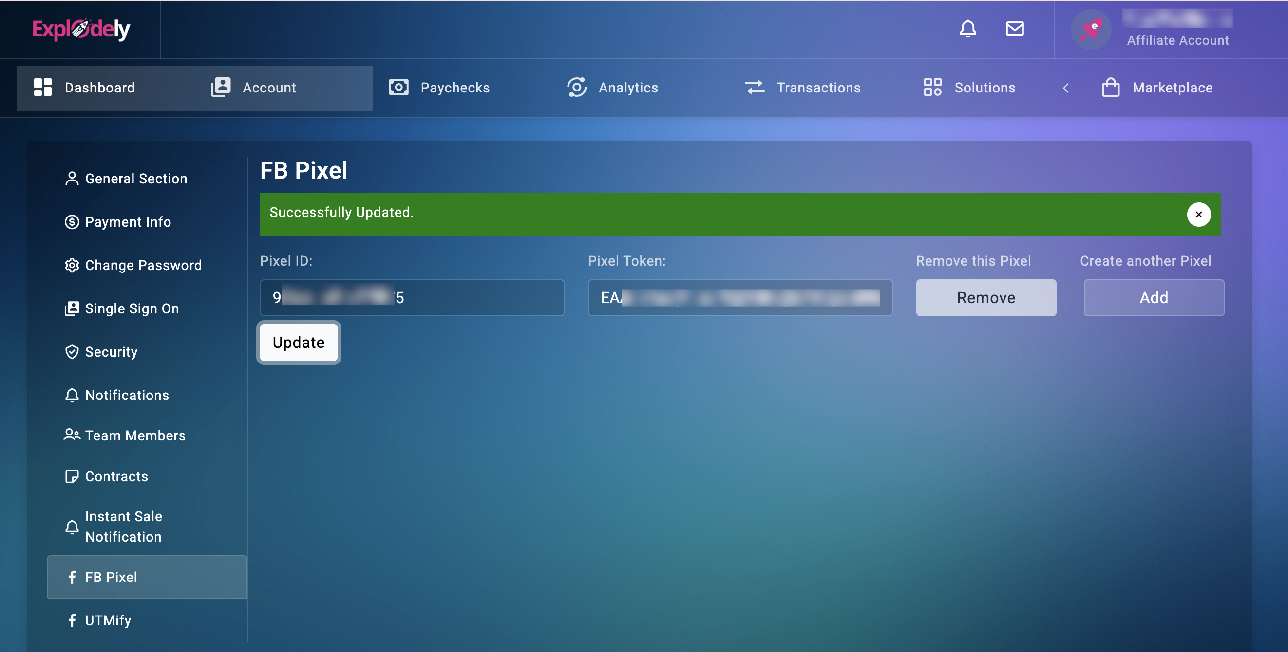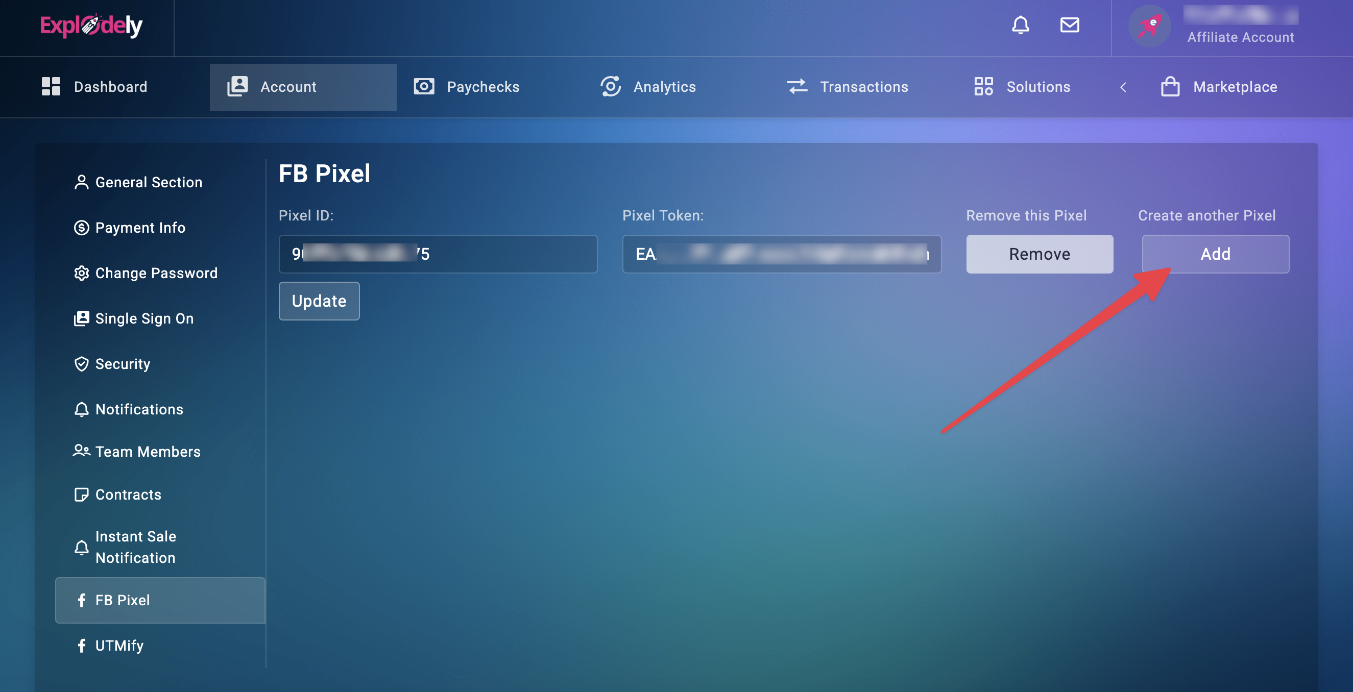 Now that you have the Pixel ID and Token, let's move to the setup in Explodely.